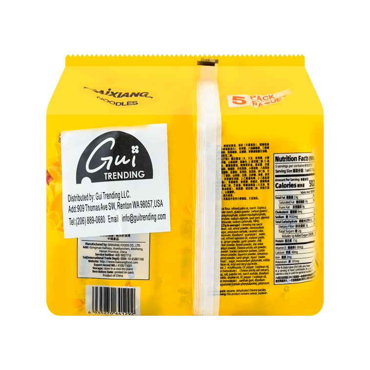 Baixiang Instant Noodles Da Lajiao Crayfish Noodles 5-pack 113g*5 packs